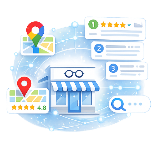 La clave nº 1 para posicionar tu Óptica delante de la competencia está en el SEO local. Tanto si te buscan en Google como si lo hacen en Maps, lo que determina si apareces o no es la ficha de tu Óptica en Google Business Profile y tu página web. Por eso es vital optimizarlas al máximo para posicionarte delante de tu competencia.